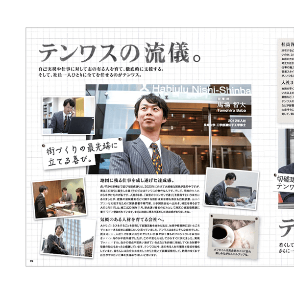 会社が大切にしている「人」「心」にフォーカスし、これまでの採用案内で伝えきれなかったヒューマンタッチな企業イメージを構築。手書き風のイラストや文字を使い、親しみやすさも演出。